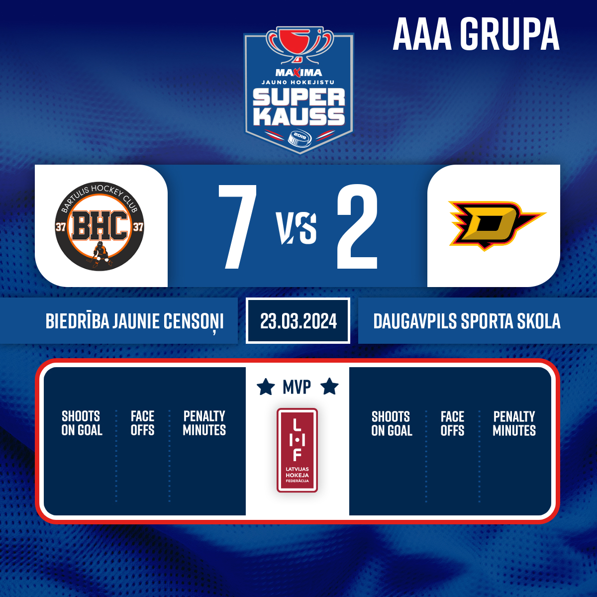- 01:30P1Goal#33 Artūrs GRIŅKOAssist: #8 Dominiks SUTĀNS
