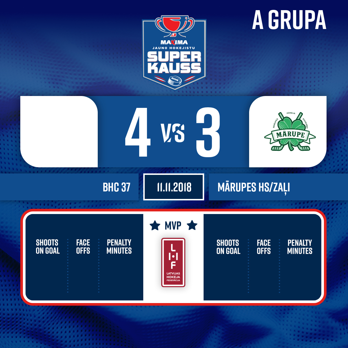 - 24:15P2Goal#8 Norberts LAZAREVSAssist: #7 Ernests LŪSĪTIS