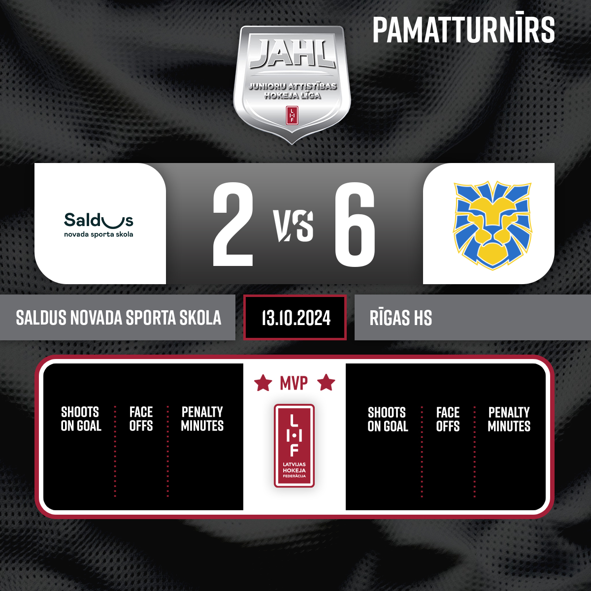 - 20:37P2Goal#10 Roberts Jānis POLISAssists: #11 Toms KUZMINS, #25 Gustavs SPĪGULIS