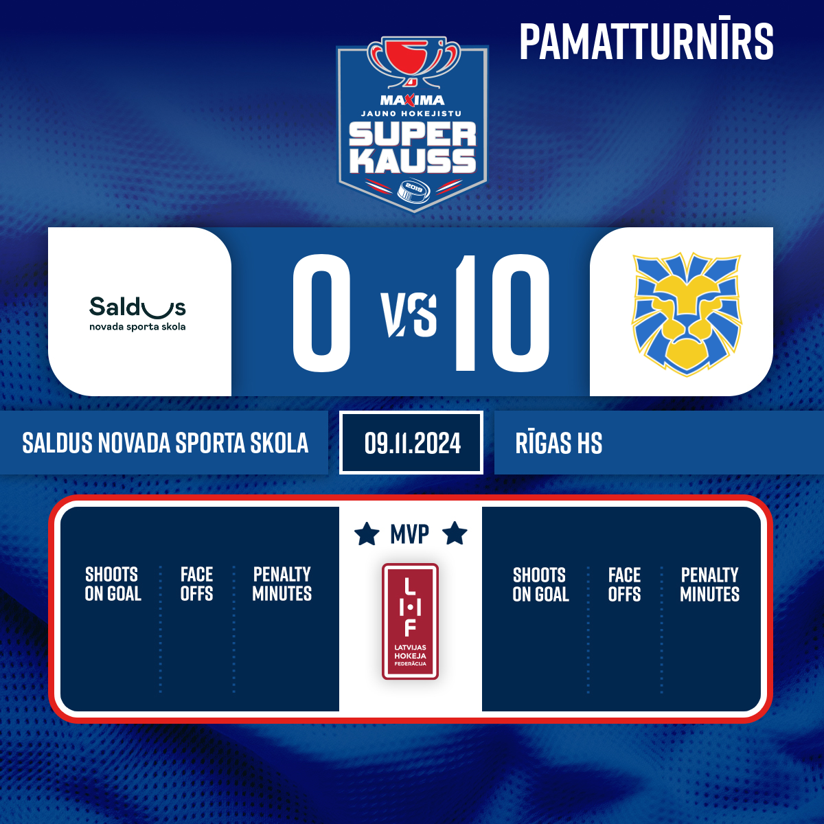 - 16:09P1Goal#24 Ņikita VENGERSAssists: #13 Roberts BINDE, #9 Nikaels LĪBIETIS