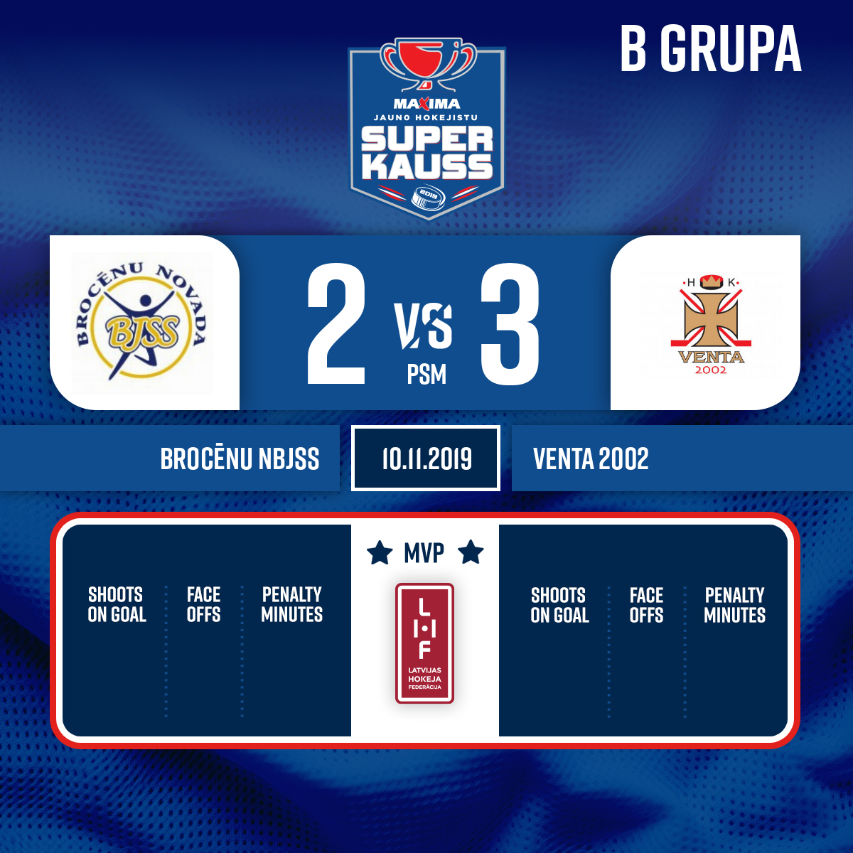 - 35:51P3Goal#8 Gustavs ĶEZBERISAssists: #3 Nils Kristians MEDNIS, #34 Mārtiņš EZERLĪCIS