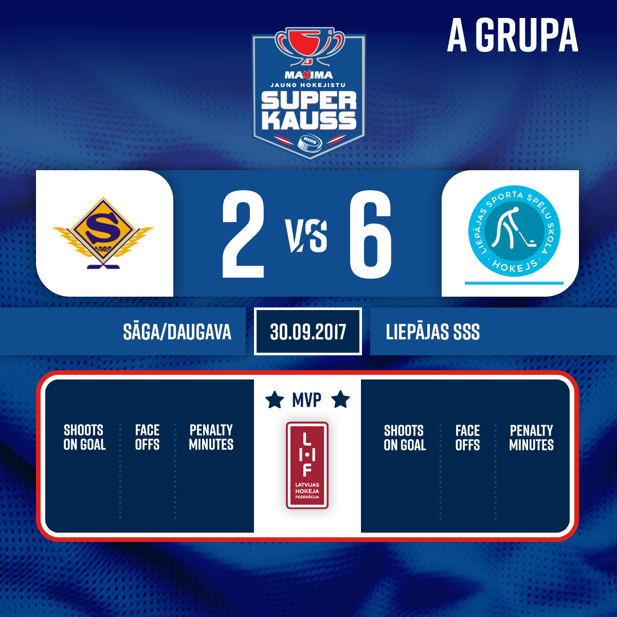 - 22:38P2Goal#8 Kristers ZVAGULISAssists: #11 Rūdolfs LAIVENIEKS, #17 Rainers PAVLOVIČS