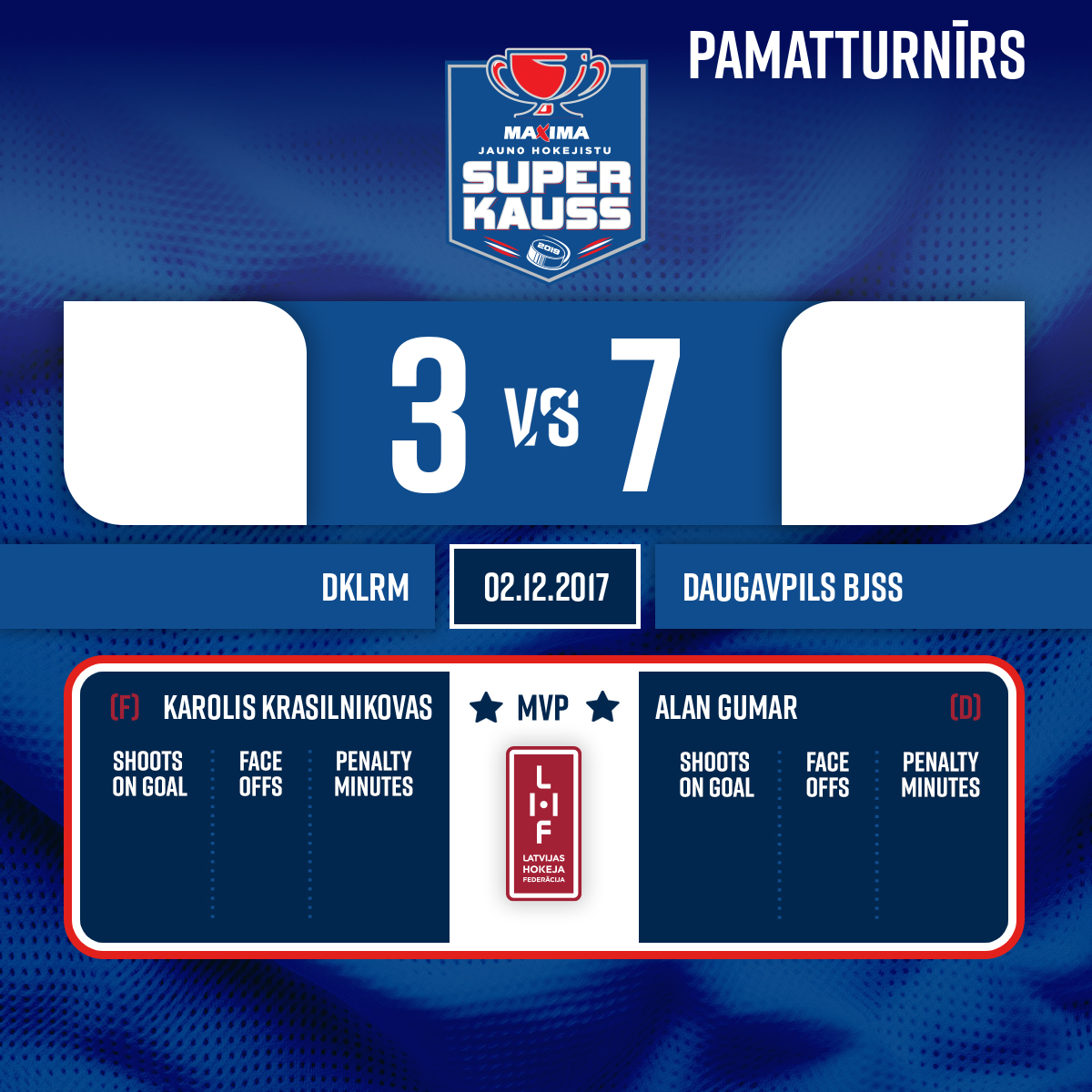 - 55:53P3Powerplay goal#27 Alan GUMARAssists: #64 Artūrs PONTAGS, #79 Artūrs ŠAKUROVS