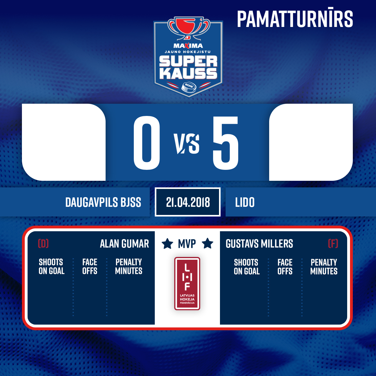 - #24 Patriks OZOLSAssists: #72 Pavel SAMSYKIN#23 Ralfs JEVDOKIMOVS0:104:30