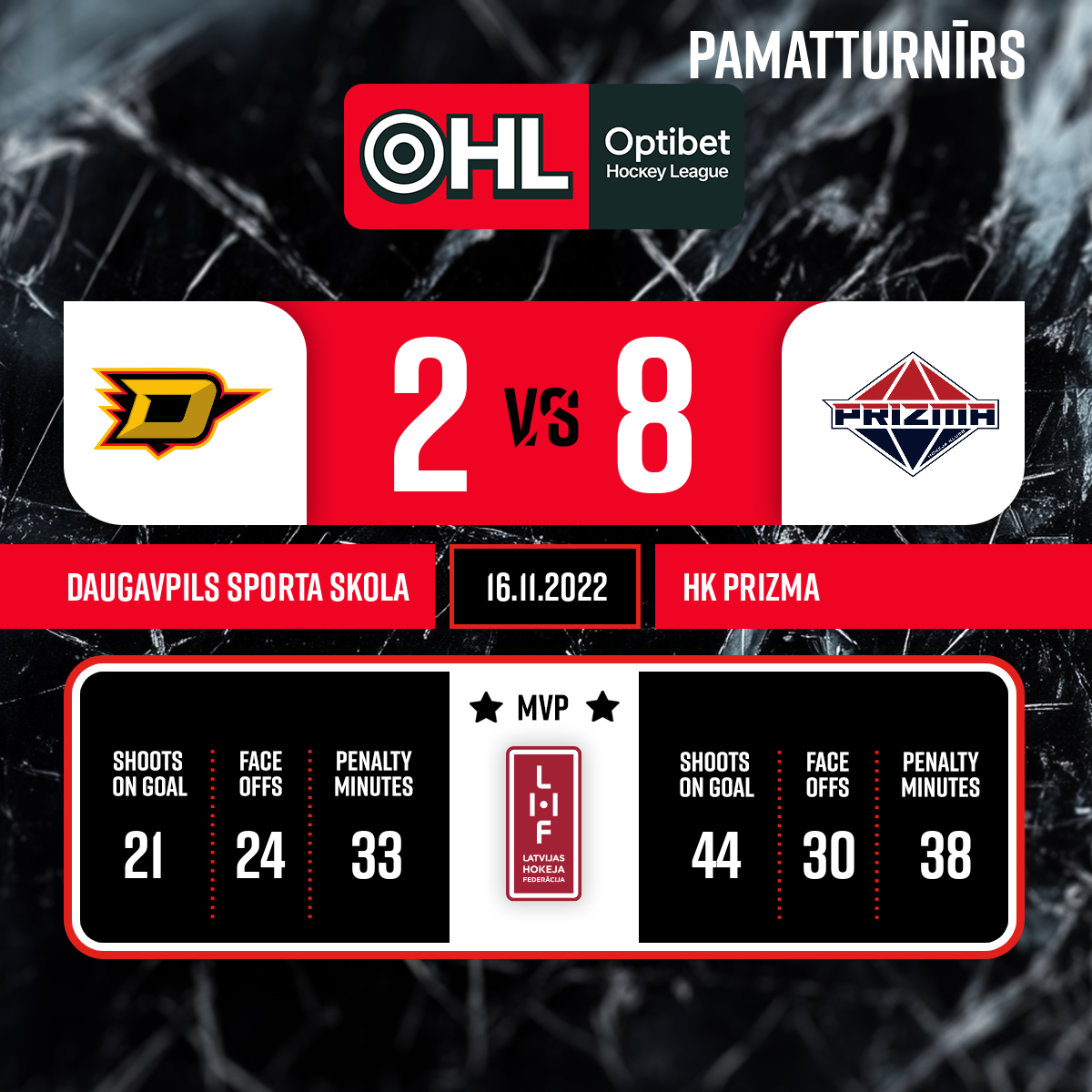 - 60:00P3Spēles labākie spēlētāji: DLSS/Dinaburga - # 73, Aigars VILMANIS, PRIZMA - #21. Armands BĒRZIŅŠ.