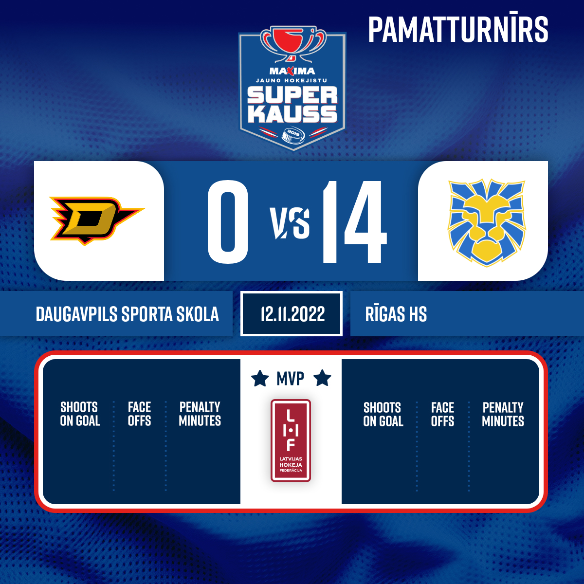 - 01:46P1Goal#14 Bruno STEPIŅŠAssist: #16 Alberts PURIŅŠ