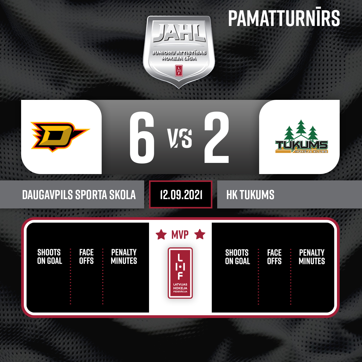 - 17:30P1Powerplay goal#19 Artūrs UŽULISAssists: #17 Artjoms TRETJAKOVS, #14 Edgars MAMAJS