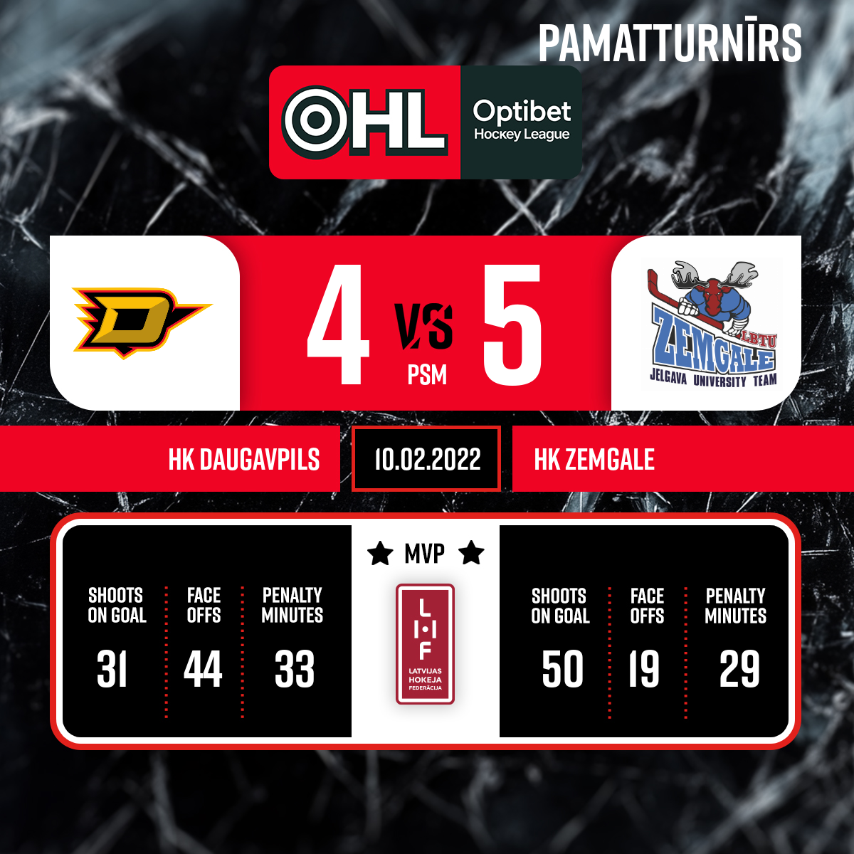 - 65:00OTSpēles labākie spēlētāji: HK DINABURGA - #29.Vladislav LESHCHENKO. HK ZEMGALE - #13. Kristaps ROĶIS.