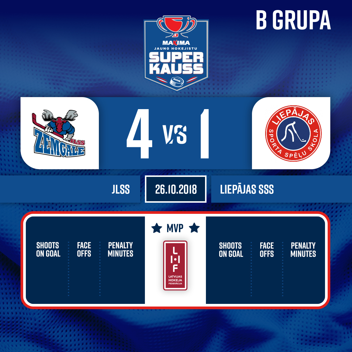 Assists: #5 Bruno VIMBA#9 Kristiāns MELBĀRDIS3:016:10- Periods 1
