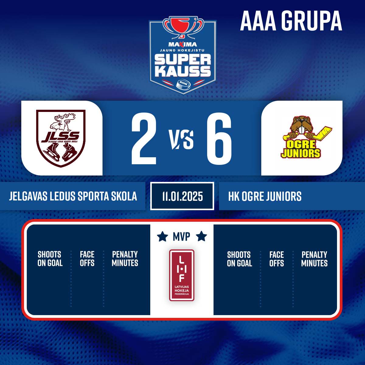 - 02:17P1Goal#3 Marks Gabriels DRIKSNAAssist: #19 Emīls ERLIHS