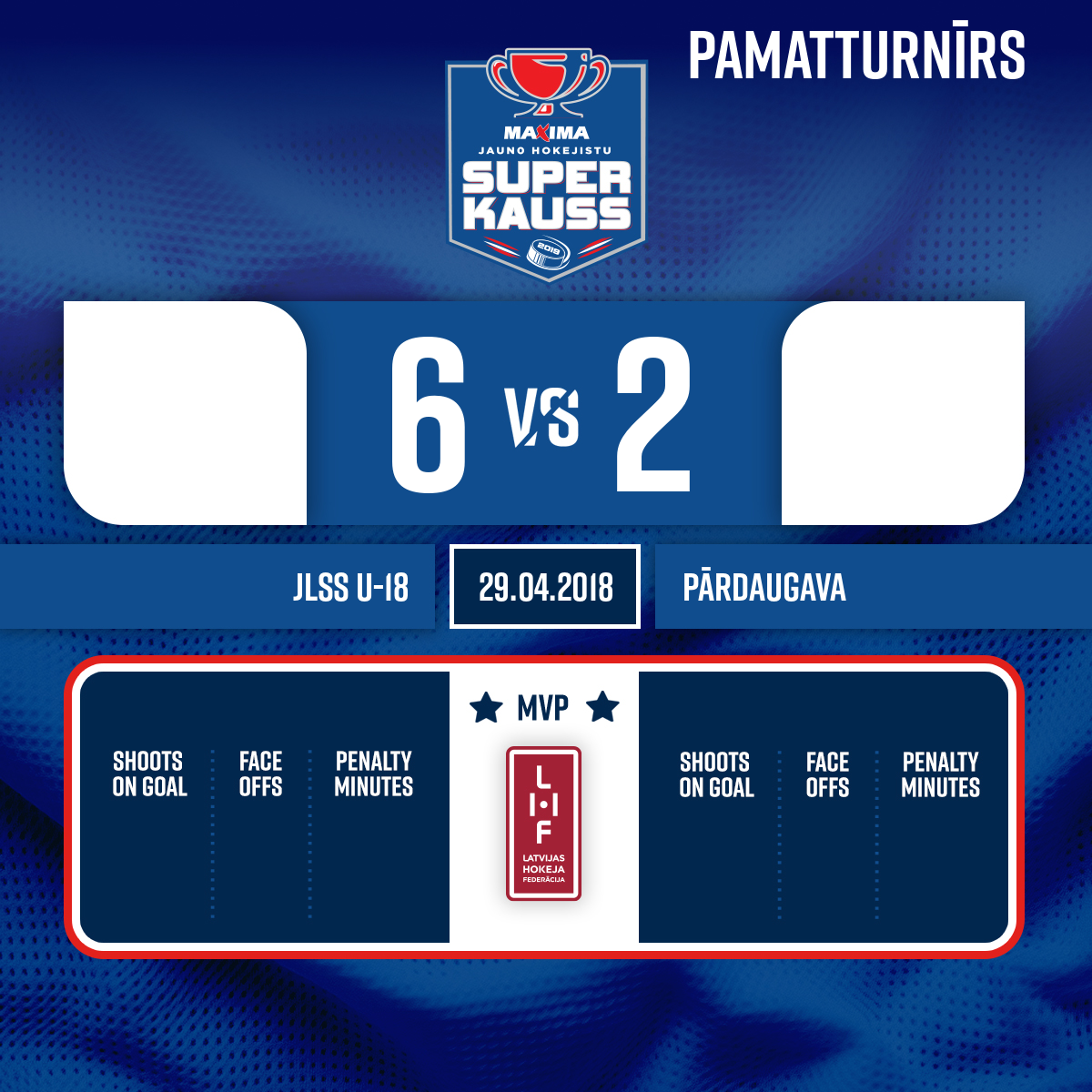 - 46:46P3Goal#10 Jānis Ričards KĀRKLIŅŠAssists: #17 Kristaps KROMANS, #9 Emīls BALODIS