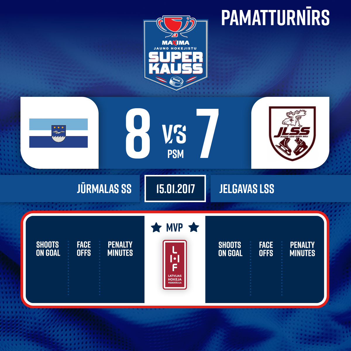 #10 Kristaps Mārtiņš BUKŠSAssists: #15 Daniels GORŠANOVS#8 Kārlis NUDIENS7:657:51