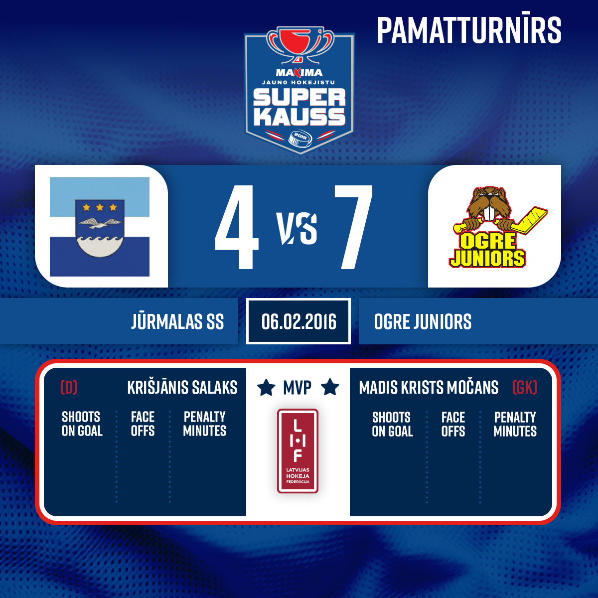 - 10:50P1Goal#33 Tomass MURĀNSAssists: #11 Jānis GRIGAĻŪNS, #82 Dmitrijs ULITOVS