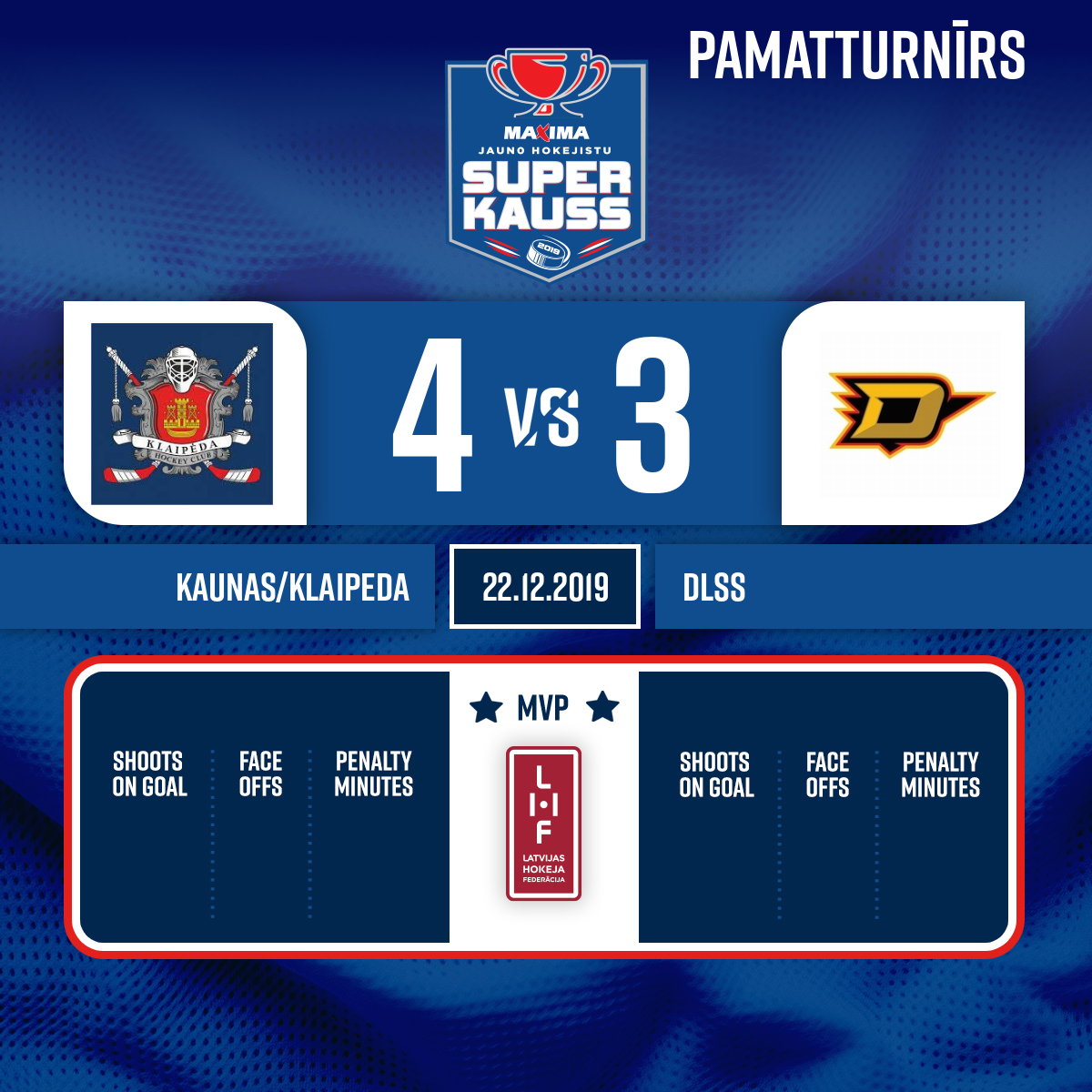 - 35:00P2Goal#16 Mikus NOVIKSAssists: #28 Nikolajs FETISOVS, #26 Ivo HARITONOVS