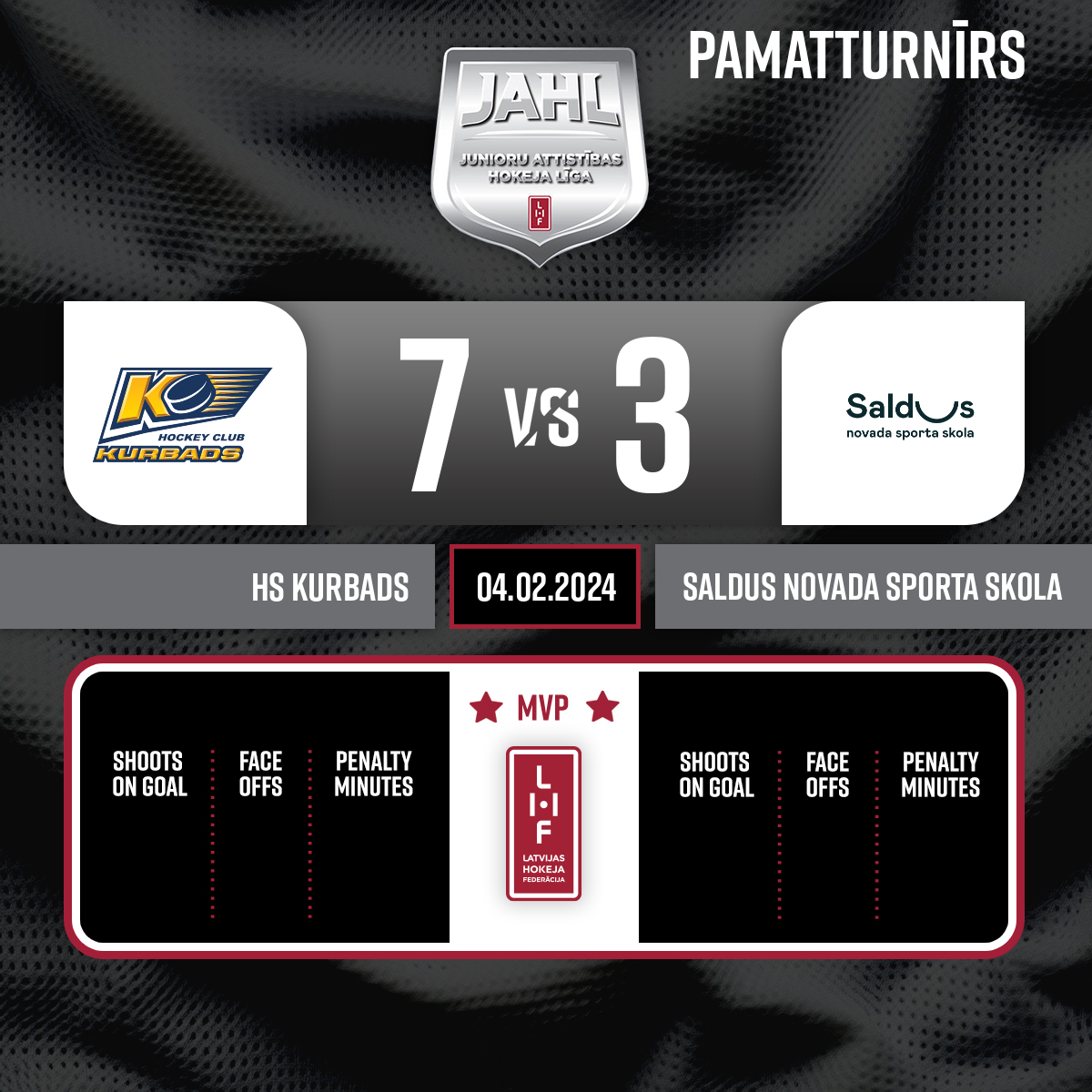 - 19:51P1Goal#43 Mārtiņš ŠULCSAssists: #7 Toms Patriks LŪSĒNS, #34 Rihards LIĢIS