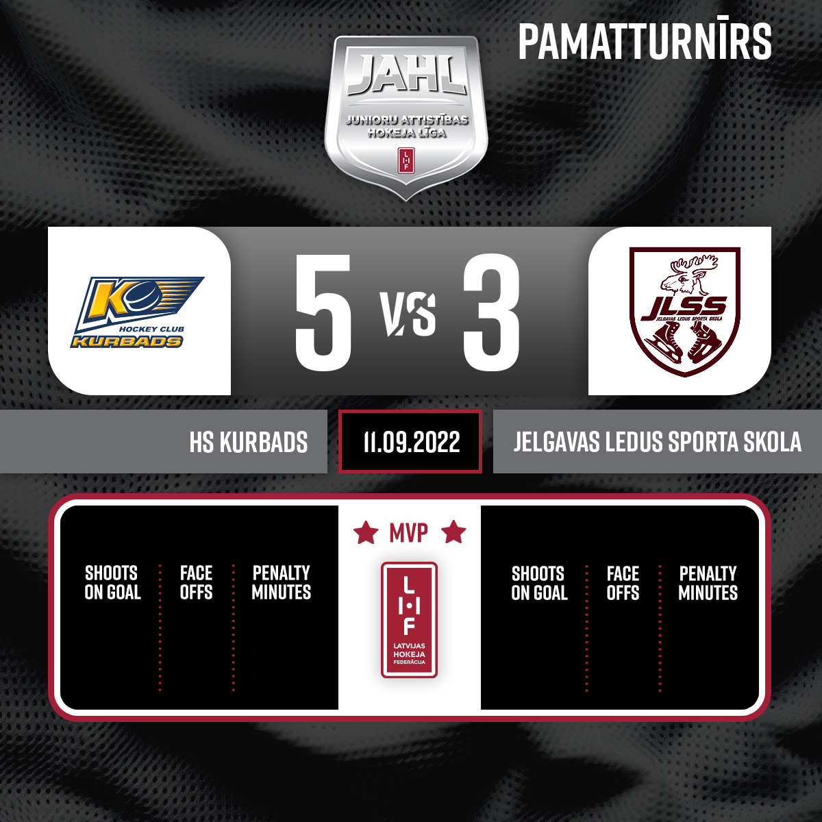 - 54:38P3Goal#9 Herberts ZEIBOTSAssists: #26 Artūrs SEDJUKEVIČS, #55 Emīls MASTEIKO