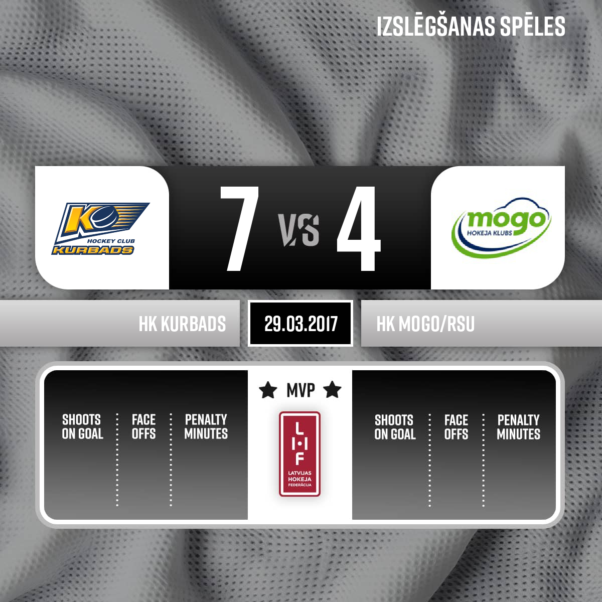 - Penalty bench officials:Sergejs SUBOČS, Dāvis ZEIBOTS