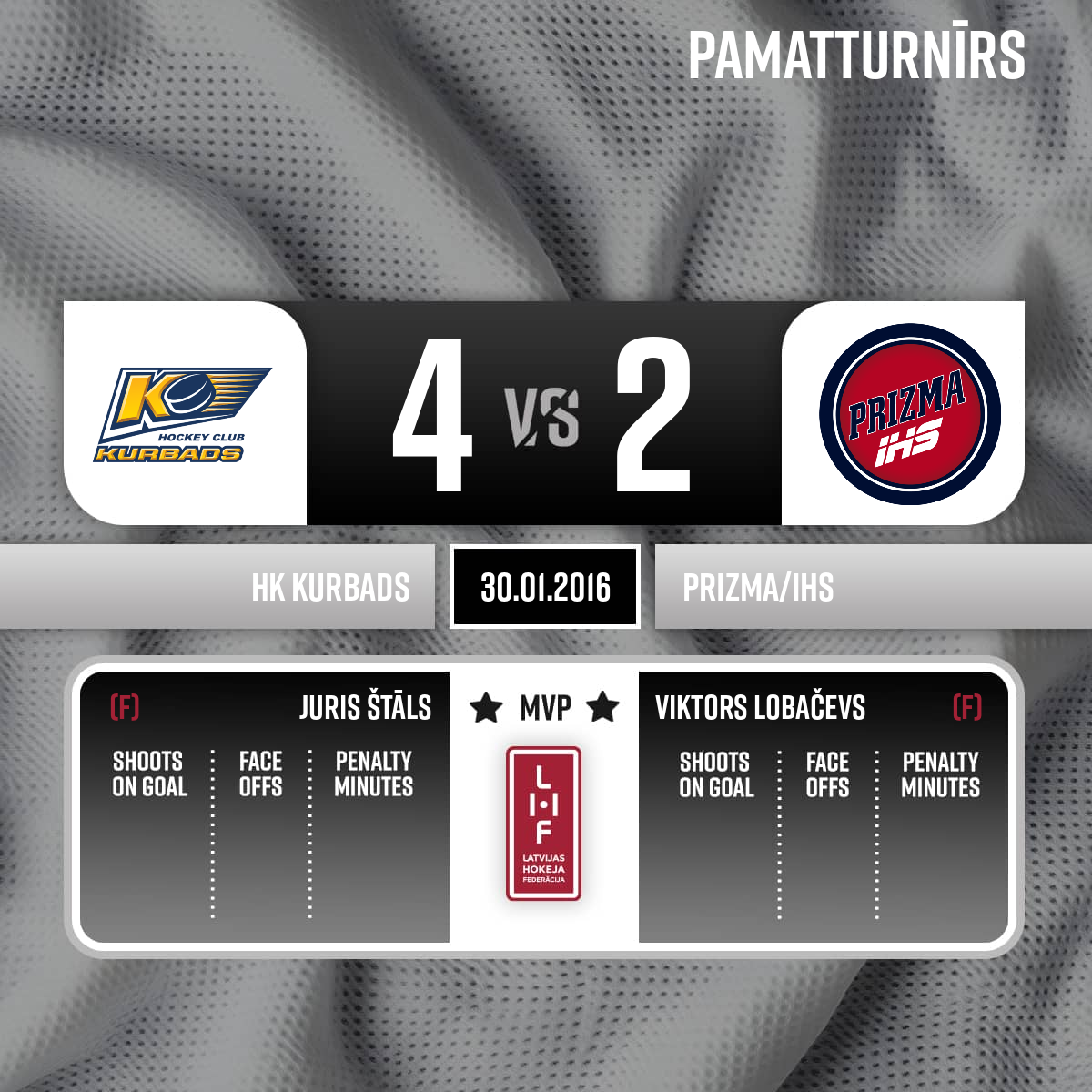 - 60:00P3Spēles labākie spēlētāji: HK Kurbads #6 Juris Štāls; HK Prizma #11 Victor Lobachev