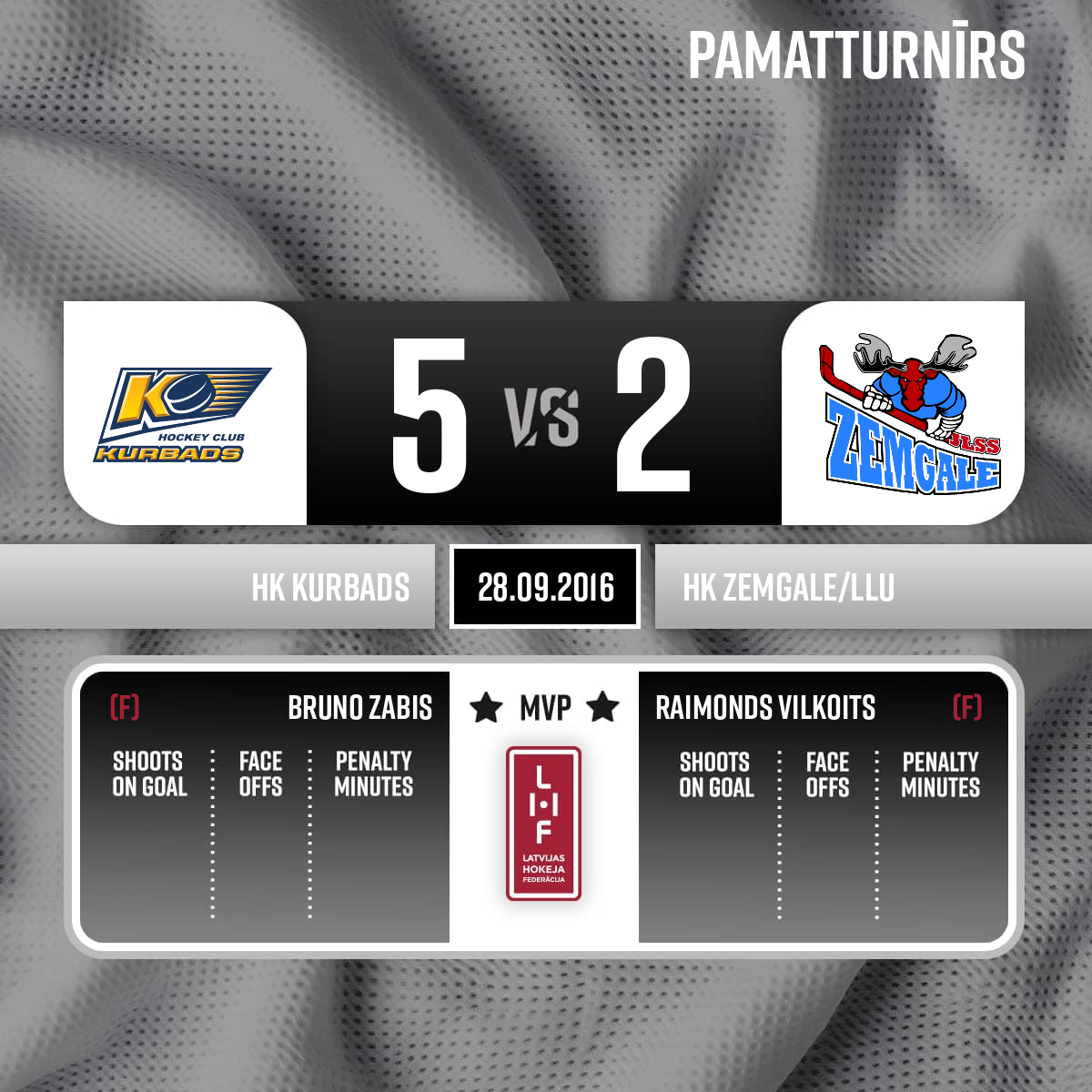 - 60:00P3Labākie spēlētāji - HK Kurbads Nr 21 Bruno Zabis HK Zemgale Nr 15 Raimonds Vilkoits