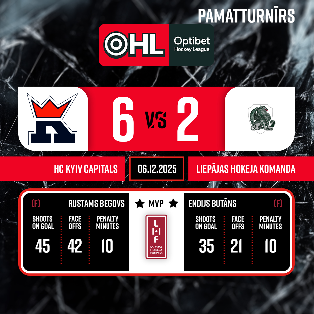 #59 Lauris BAJARUNSAssists: #15 Mārtiņš KARSUMS#28 Andrii KRYVONOZHKIN6:2PP1, 57:05