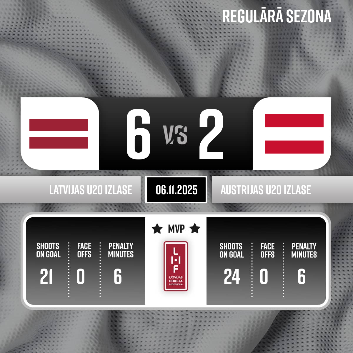 Goal#10 Daniels SERKINSAssists: #27 Markuss Kristiāns SIERADZKIS, #26 Oskars Nils BRIEDIS - 40:00 Start of the 3rd period