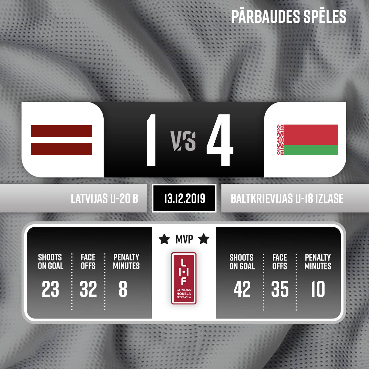 - 60:00P3Labākie spēlētāji/ Best Player of game Latvija U20 B –Nr 1 VĪTOLS Ēriks Baltkrievija U-18 – Nr 30 SHOSTAK Yan