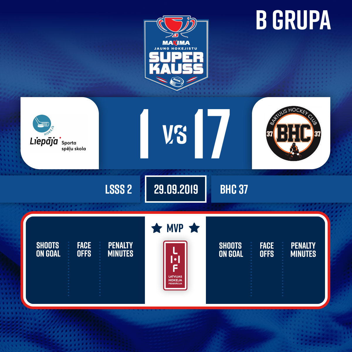 - 30:00P2Goalkeeper out#1 Ņikita SOLOVJOVS