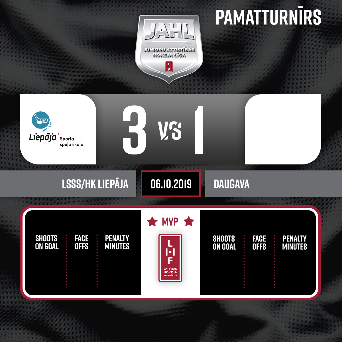 - 60:00P3Goalkeeper out#38 Rolands TIJĀRS