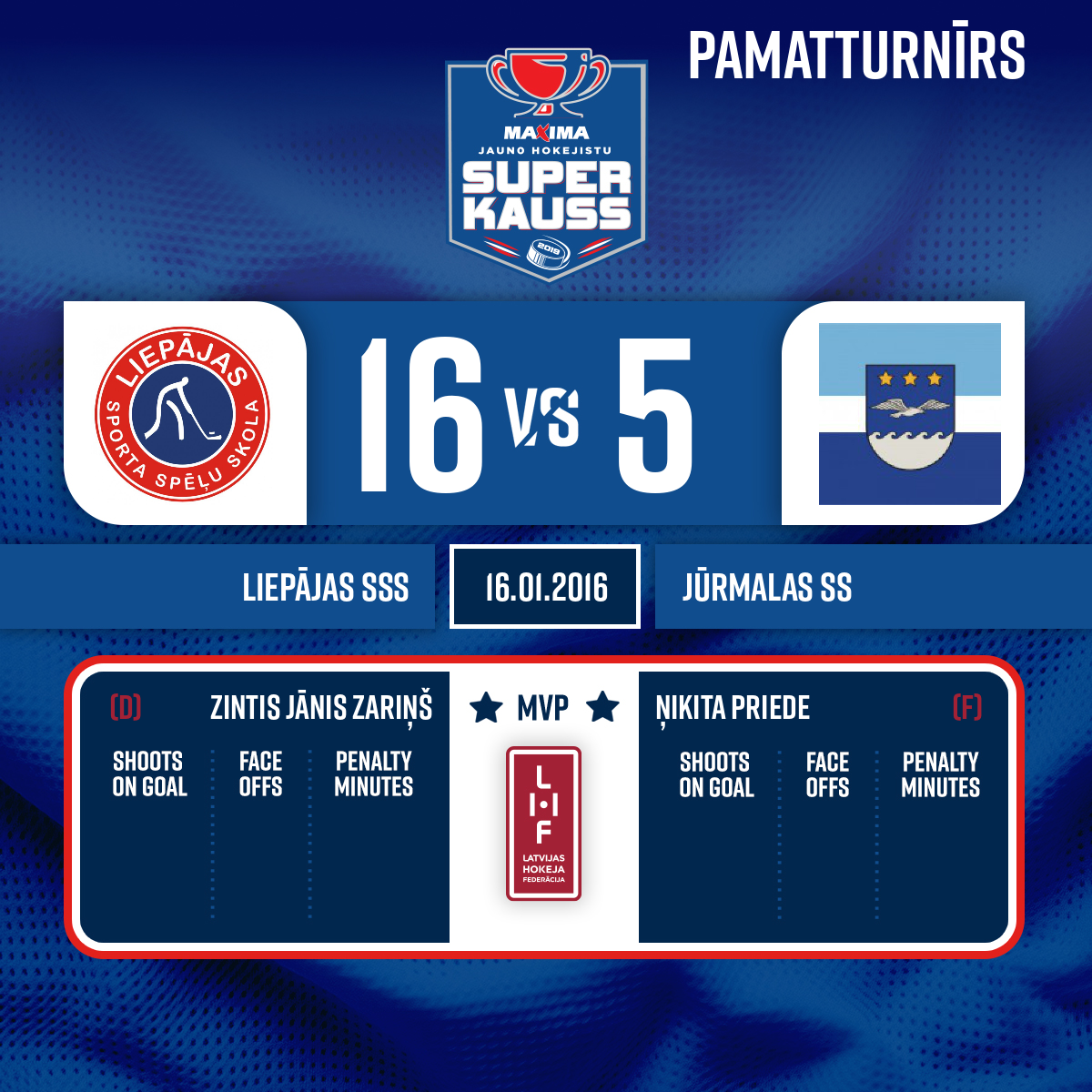 - 16:50P2Goal#8 Kristers ZVAGULISAssist: #9 Dāvis BOROZINSKIS