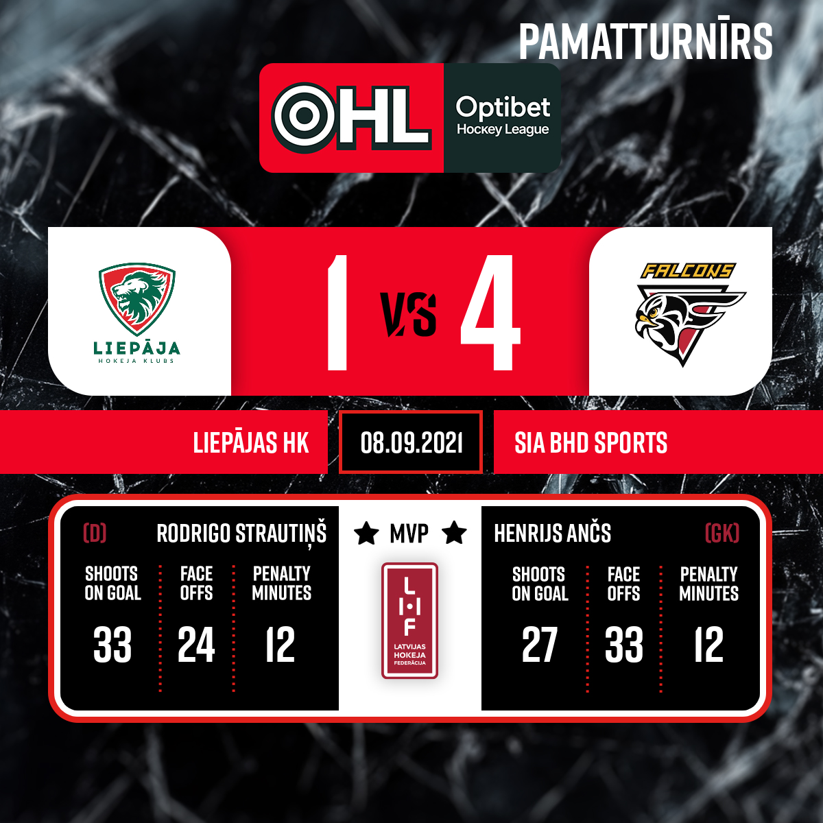 Assists: #20 Rūdolfs POLCS#91 Deivids SARKANIS0:350:15- Periods 1