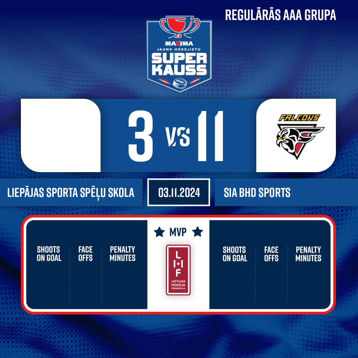 - 60:00P3Goalkeeper out#30 Gustavs ŠLEGELMILHS