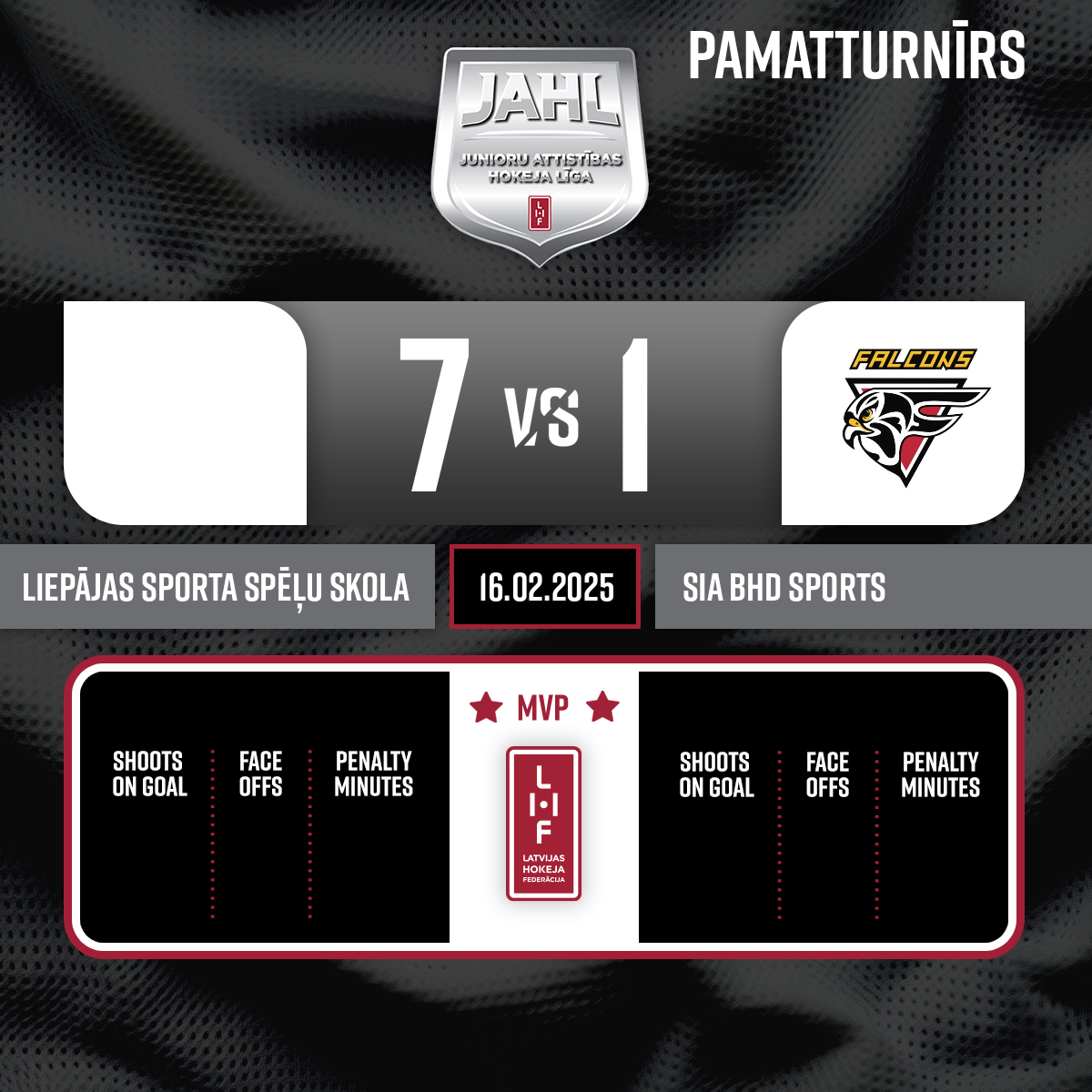 - 60:00P3Goalkeeper out#30 Rodions PRONSKIS