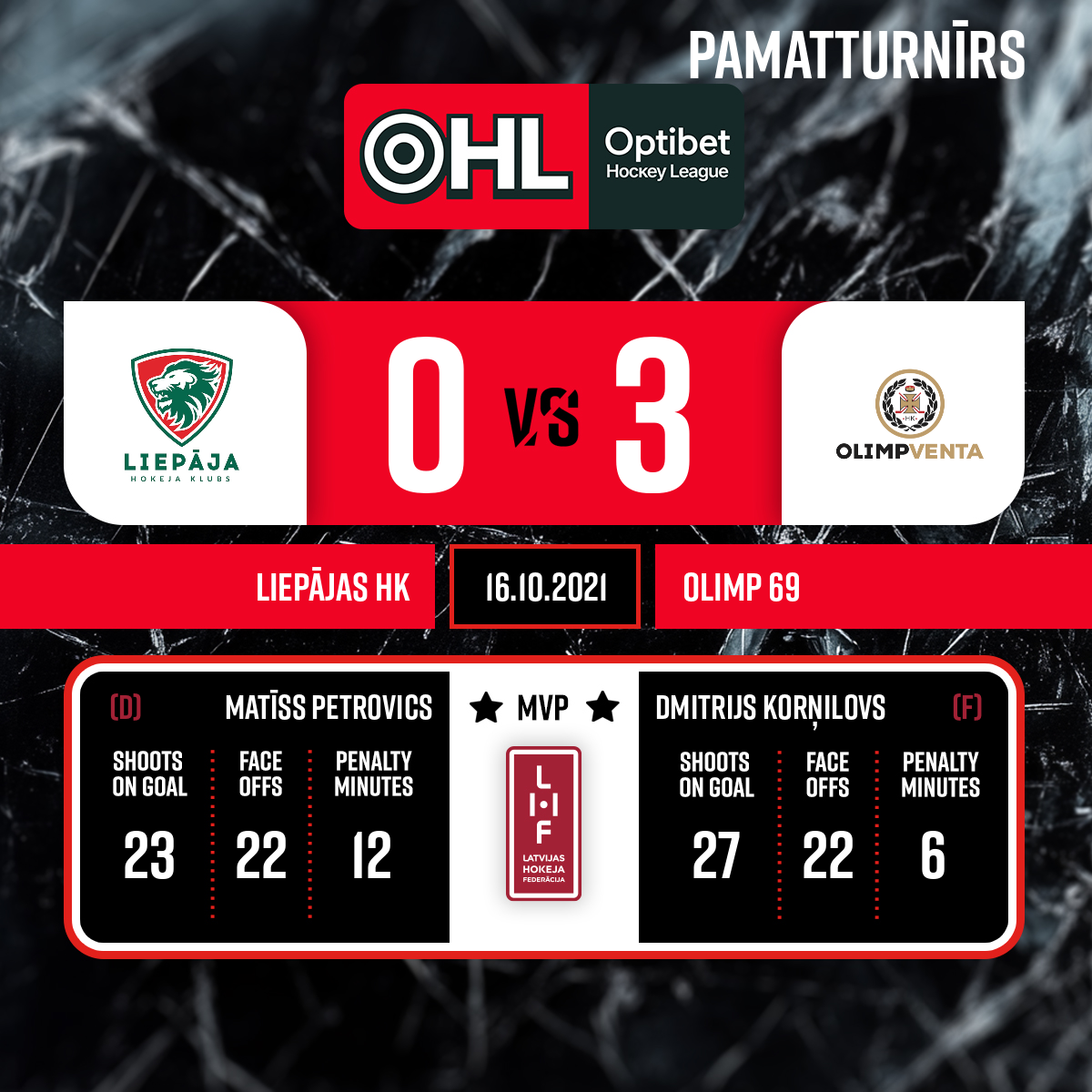 - 60:00P3Spēles labākie spēlētāji - HK Liepāja Nr.24 Matīss Petrovics Olimp/Venta 2002 Nr.17 Dmitrijs Korņilovs