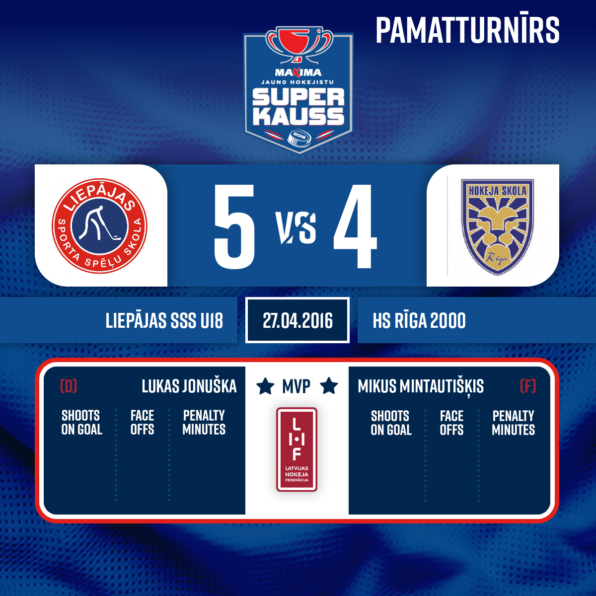 - 36:52P2Goal#15 Patriks TRASÛNSAssist: #88 Pāvils GALSONS