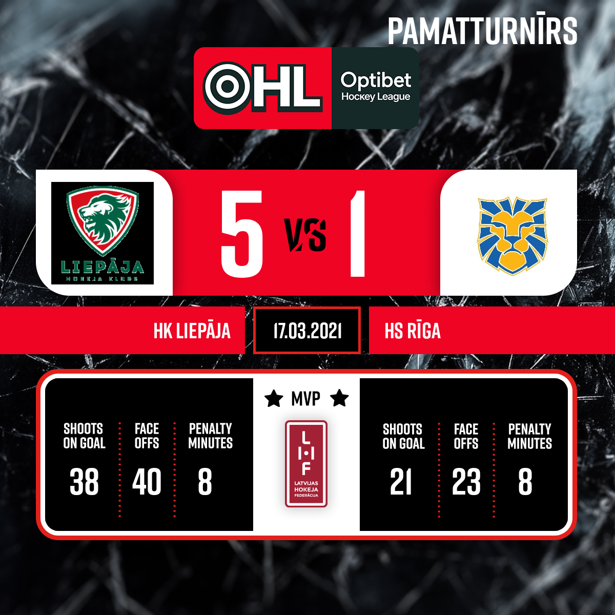 - 60:00P3Goalkeeper out#30 Mārcis GLŪZDA