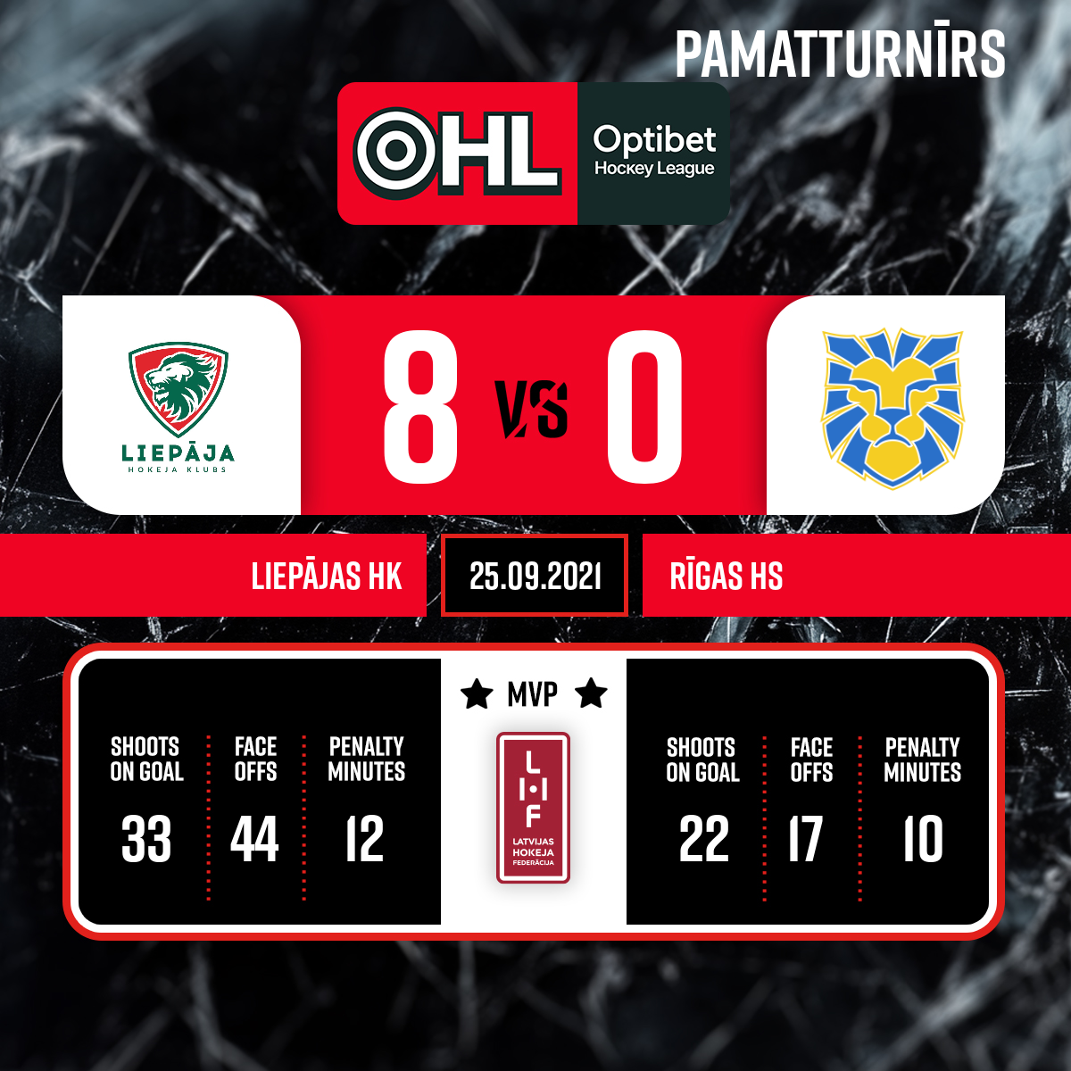 - 60:00P3Šīs dienas spēles labākie spēlētāji: HK Liepāja komandā Nr.11 Linards MAZURS-MAGO, HS Rīga komandā Nr.28 Daniels Bunkus