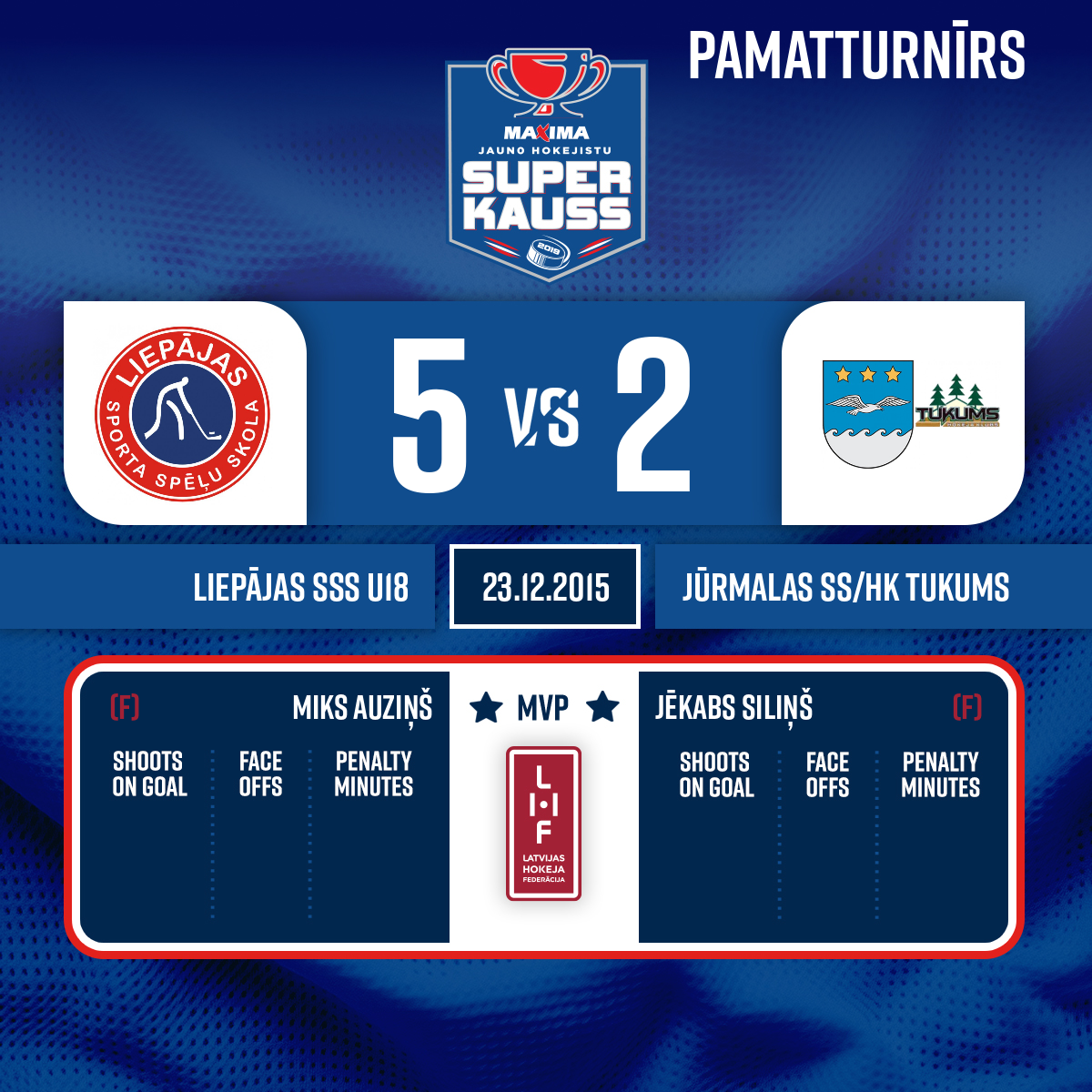 #71 Magnuss JĀKOBSONSAssists: #82 Miks AUZIŅŠ#18 Endijs BUTĀNS3:234:40