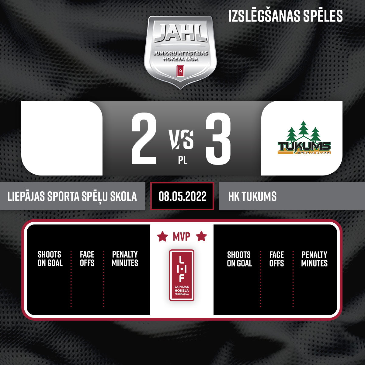 - 48:54P3Goal#3 Raiens MELNIS DZEGUZEAssist: #13 Mārtiņš ŠULCS