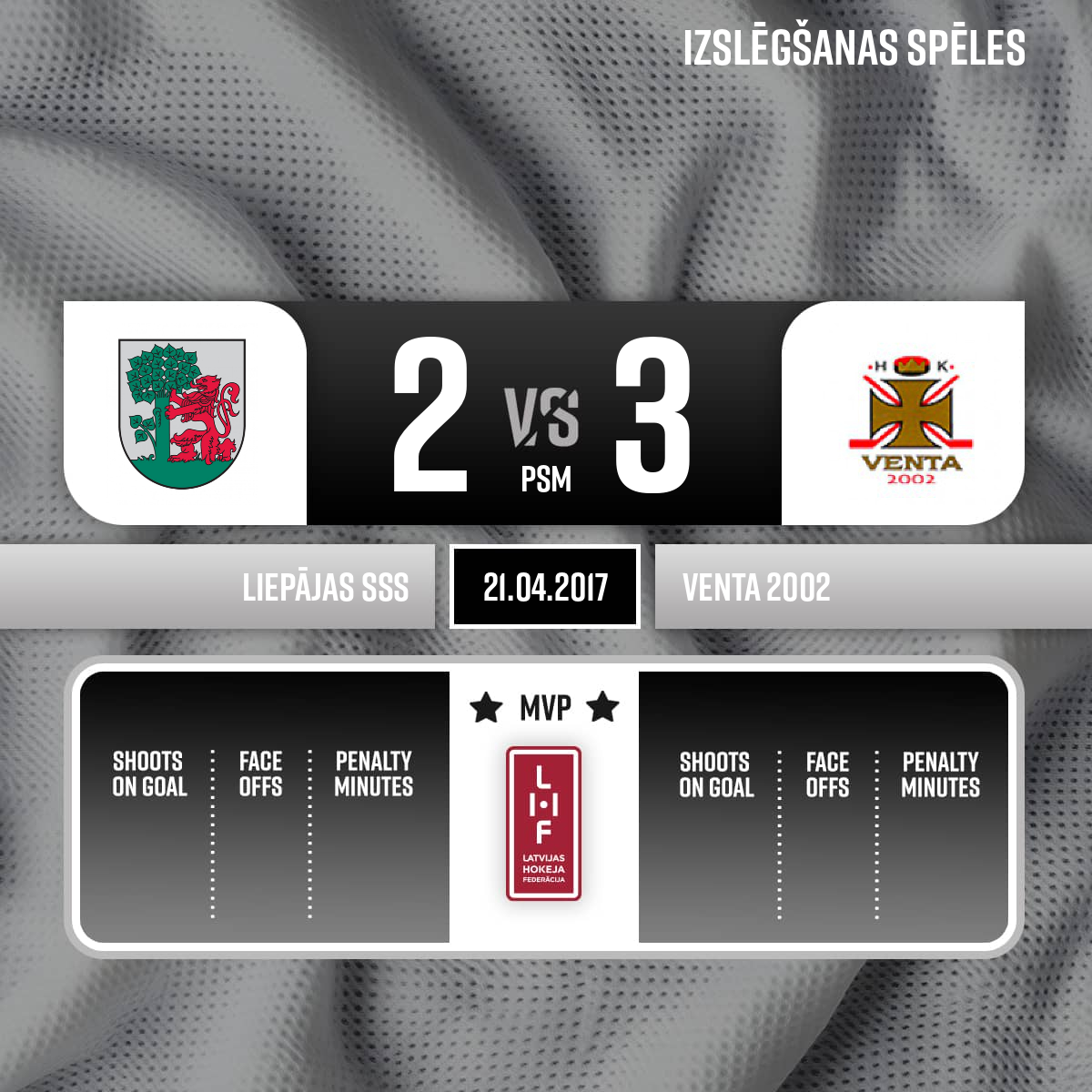 - Penalty bench officials:Niks SKRĪVERS, Valdis LĪGUTS