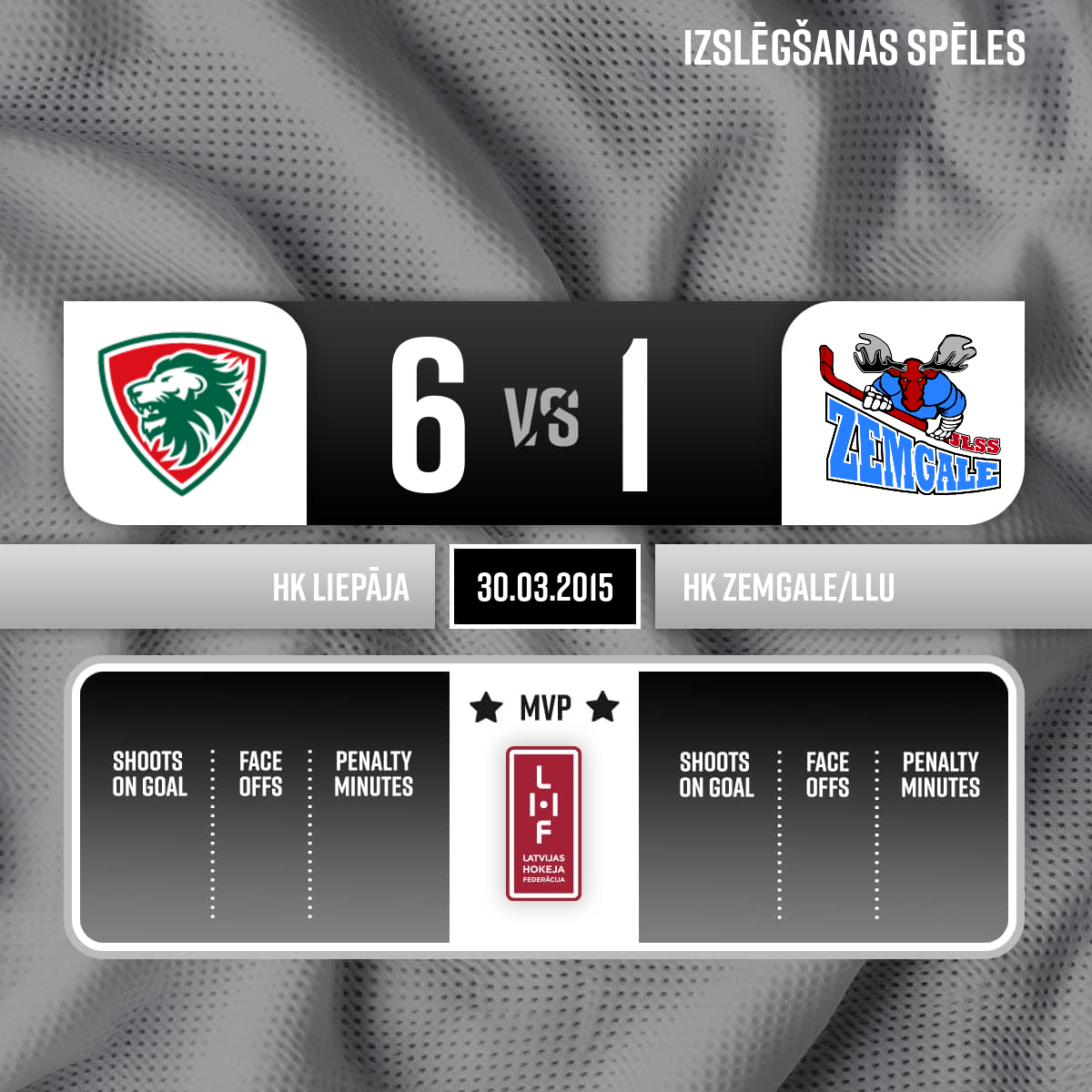 - 47:15P3Goal#52 Dmitrijs KORŅILOVSAssists: #94 Edgars HOMJAKOVS, #8 Guntis PUJĀTSvienādos