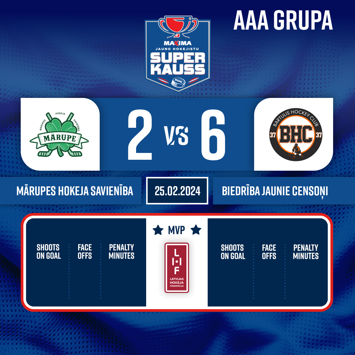 - 36:04P3TimeoutMārupes Hokeja Savienība