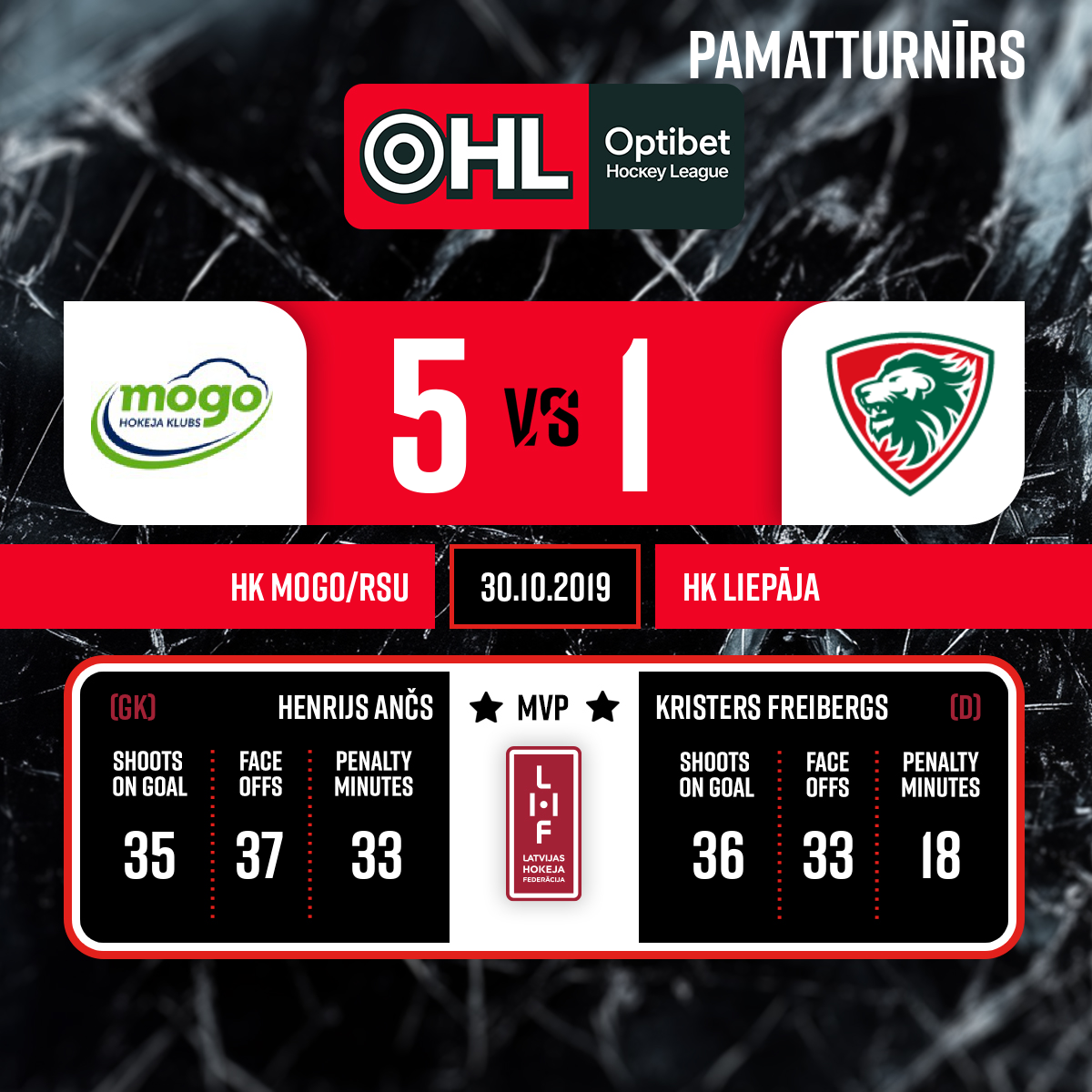 - 60:00P3Spēles labākie spēlētāji: HK Mogo - Henrijs Ančs #33 HK Liepāja - Kristers Freibergs #3