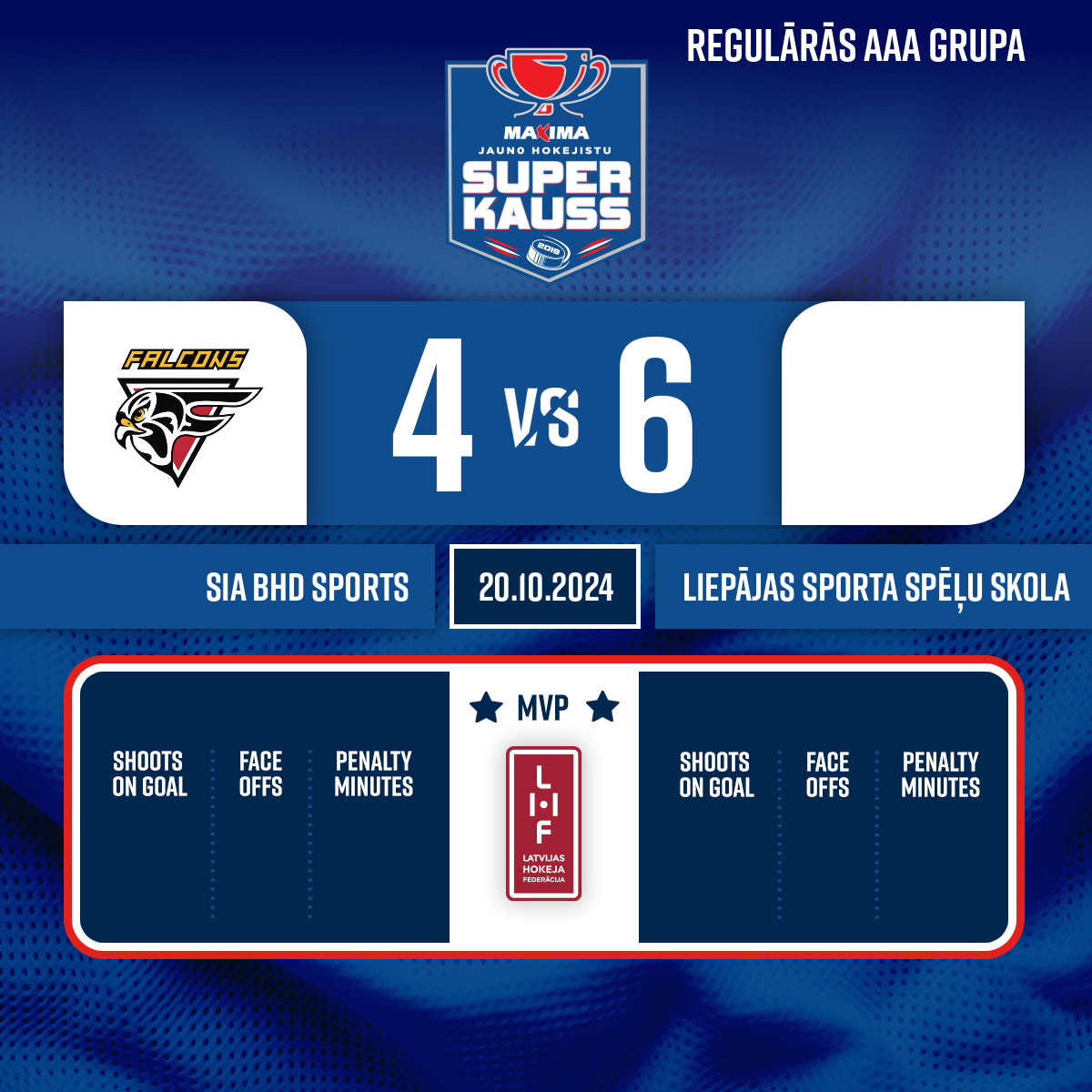 - 43:11P3Goal#26 Rolands MEDVEDSKISAssists: #16 Marians BOGDANOVS, #35 Kristers Kārlis ŠENKERS