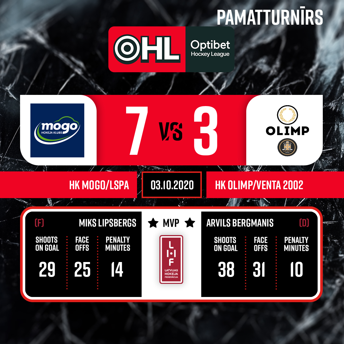 - 60:00P3Labākie spēlētāji: HK Mogo/LSPA - #11 Miks LIPSBERGS HK Olimp/Venta 2002 - #65 Avrils BERGMANIS