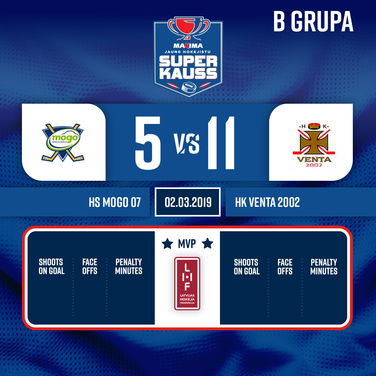 - 40:23P3Goal#8 Kristers MEŽJĀNISAssists: #10 Artūrs VEĢERIS, #28 Maksims FROLOVS