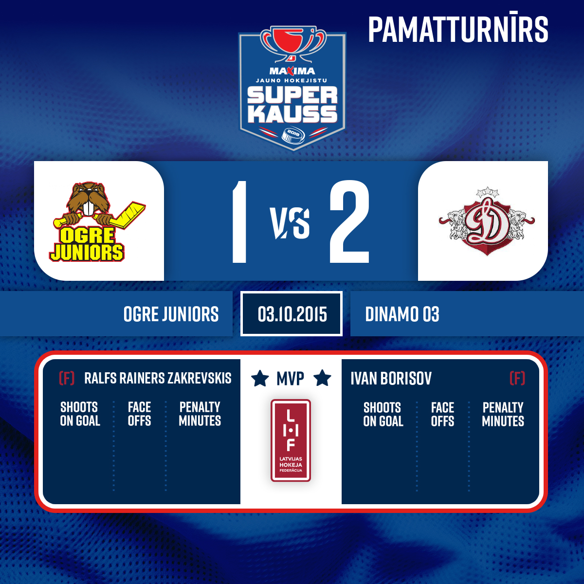Spēles labākie spēlētāji : Ogre juniors #14 Ralfs Rainers Zakrevskis, Dinamo 03 #87 Ivan Borisov