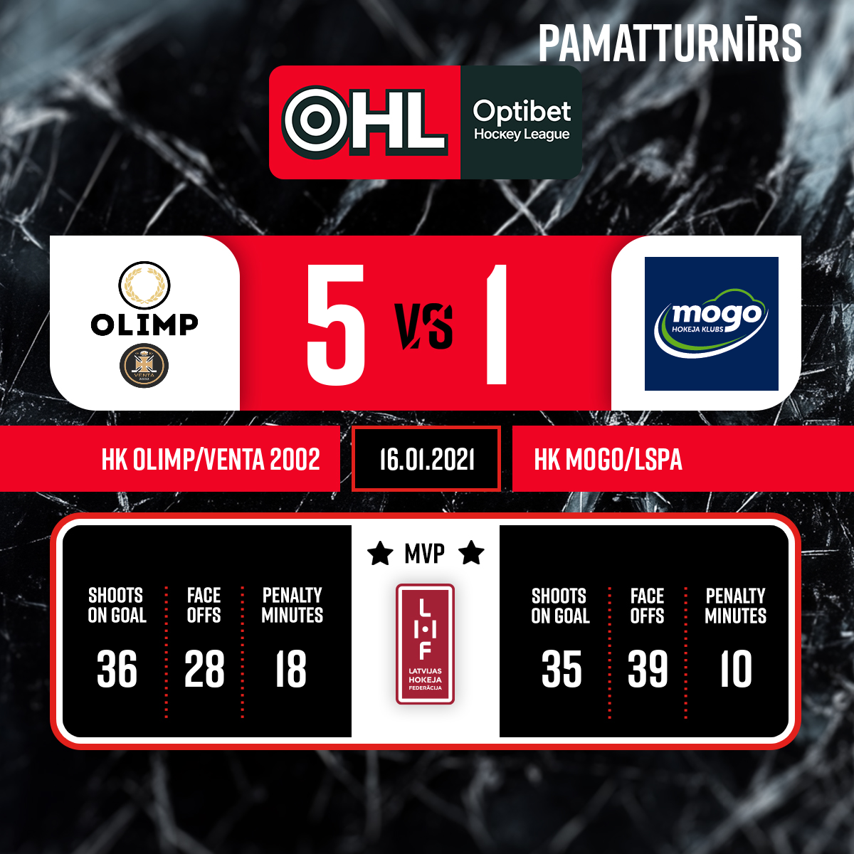 - 60:00P3Labākie spēlētāji: HK Mogo/LSPA komandā – Henrijs Ančs #33; HK Olimp/Venta 2002 komandā – Renārs Undelis #84.