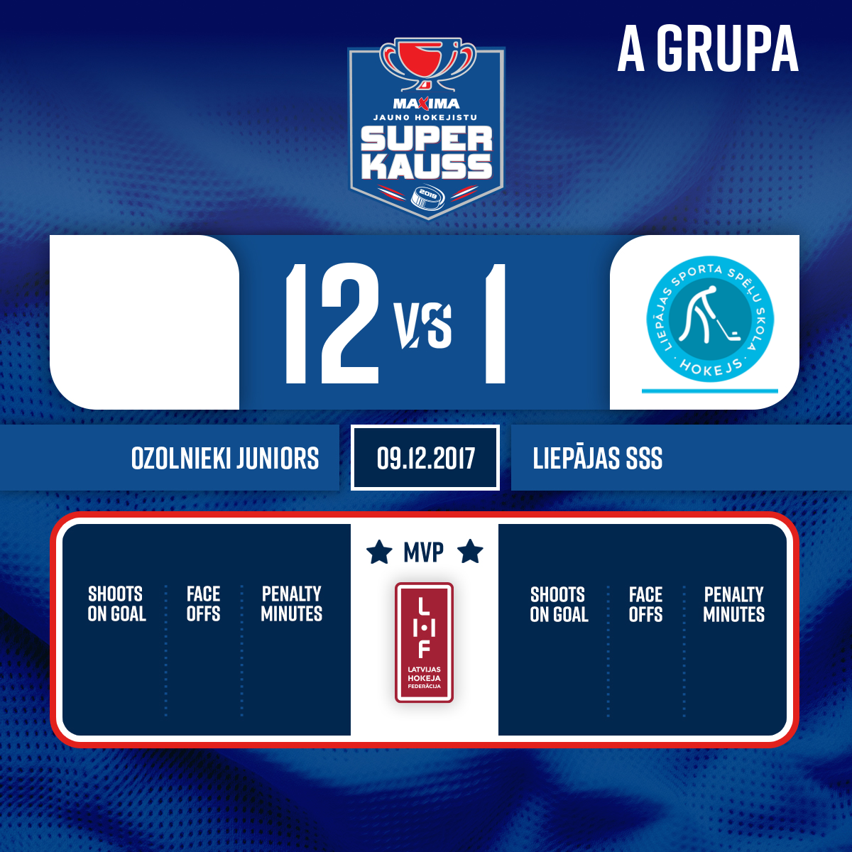 - #71 Kārlis DZENĪTISAssists: #8 Matīss OŠĀNS#91 Ingus LOČMELIS10:142:51