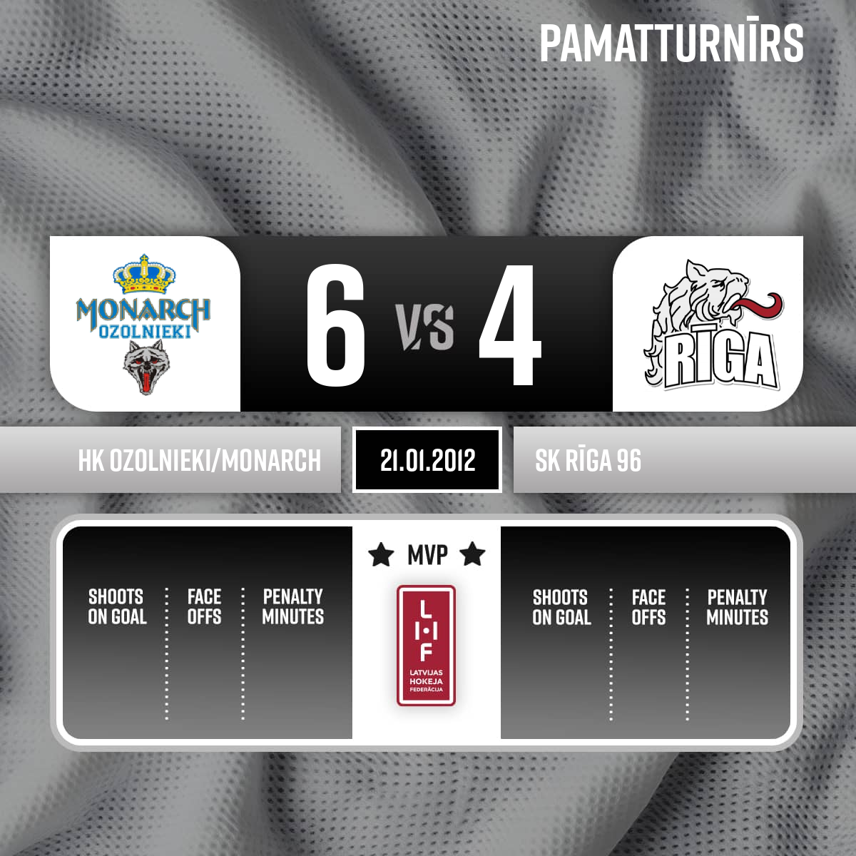 - 17:12P1Goal#22 Reinis VĪTOLIŅŠAssists: #15 Ruslans IGNATOVIČS, #28 Ģirts ZEMĪTIS