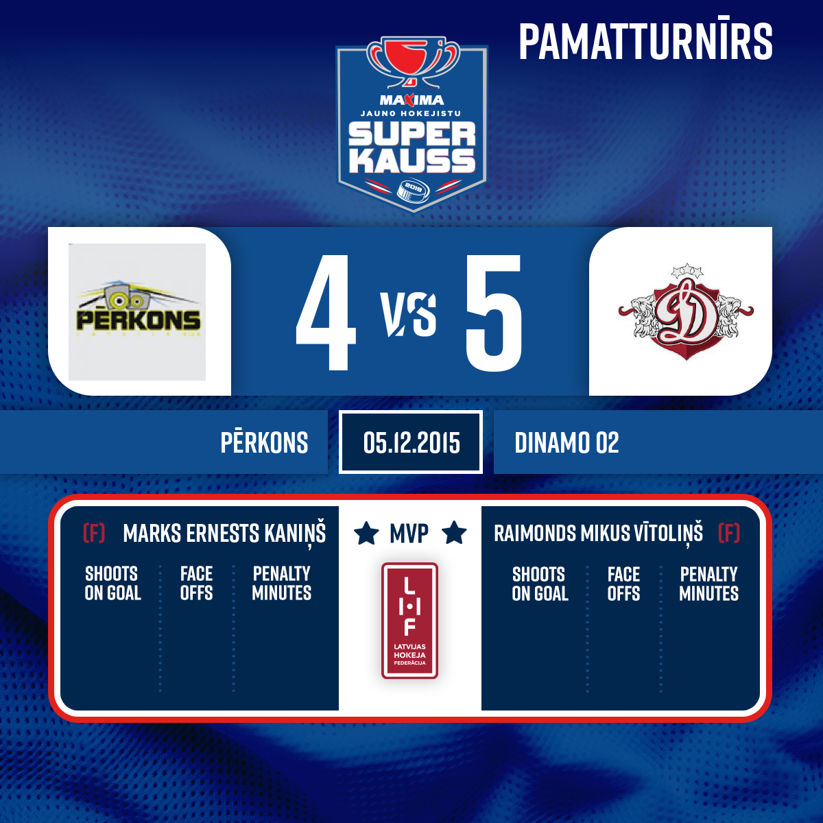 - 05:41P1Goal#8 Raimonds Mikus VĪTOLIŅŠAssist: #93 Oskars LAPINSKIS